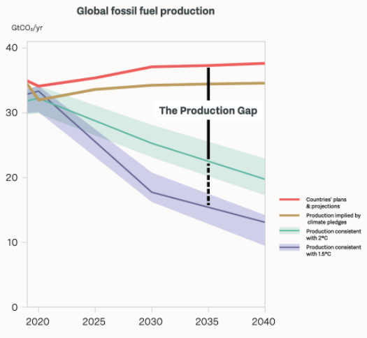 Em contraste com os crescentes compromissos de net zero, o relatório Production Gap de 2021 conclui que os planos dos governos para produção de combustíveis fósseis permanece perigosamente fora de sincronia com os limites do Acordo de Paris. Os planos e projeções de produção dos governos levariam a cerca de 240% mais carvão, 57% mais óleo e 71% mais gás natural em 2030 do que seria consistente com o limite de aquecimento médio global em 1,5°C. Os países do G20 direcionaram quase US$ 300 bilhões em novos fundos para atividades relacionadas a combustíveis fósseis desde o início da pandemia COVID-19; mais do que para energia limpa. Este relatório detalha as estratégias, apoio e planos do governo para a produção de combustíveis fósseis em 15 dos principais países produtores, incluindo o Brasil. Diante dos esforços globais de descarbonização e do potencial pico de demanda no curto-médio prazo, o governo brasileiro busca aumentar a produção para maximizar a "monetização" de suas reservas de O&G. O PNE 2050 da EPE prevê aumento da produção de óleo e gás em 60% (2020) e 110% (2030). Governos têm um papel fundamental na redução da produção de combustíveis fósseis e na garantia de que a transição energética seja justa e equitativa.